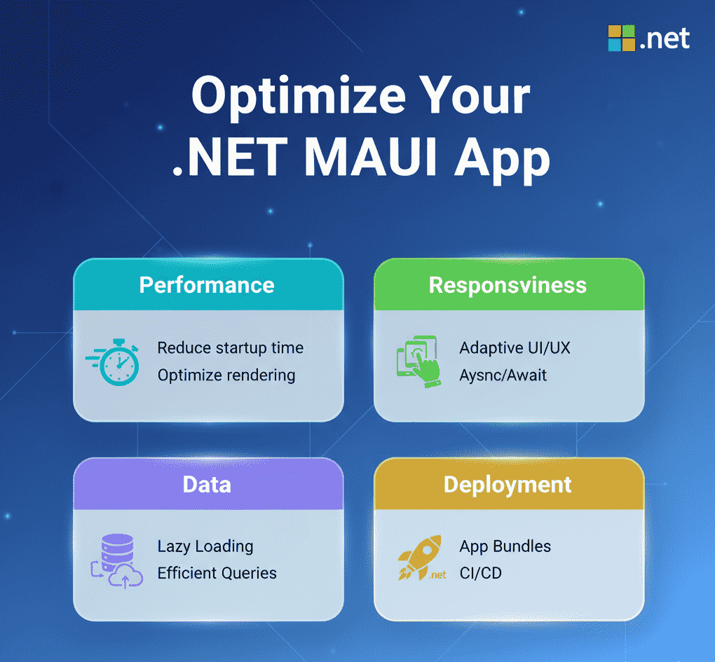 You can guarantee that your app provides a faultless user experience, keeping users interested and returning for more, by putting several performance optimization techniques into practice. Let’s investigate how to make your app a champion by delving into the realm of.NET MAUI performance improvement.
