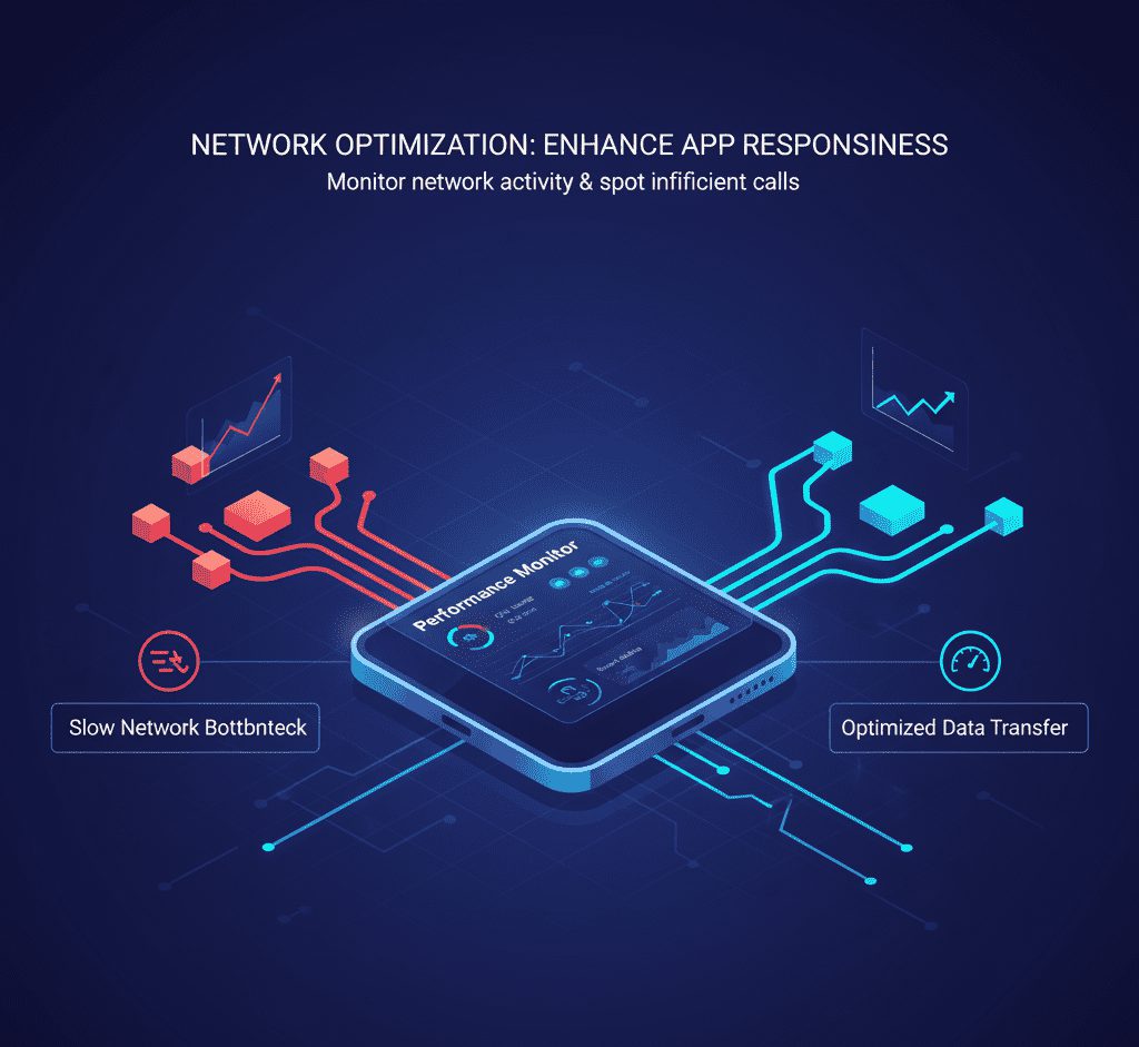 Performance bottlenecks can be caused by network queries, particularly on devices with slower internet connections. Utilize technologies to keep an eye on network activity and spot pointless or ineffective calls. This enables you to enhance app responsiveness and optimize data transport.